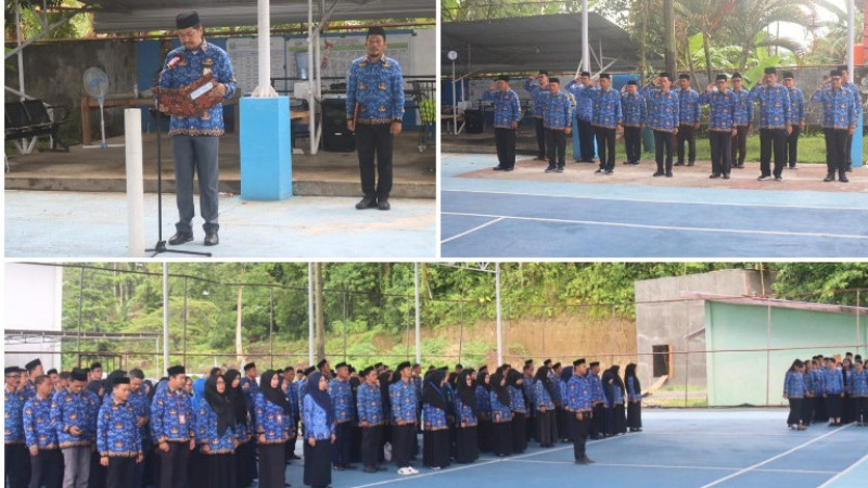 Mamuju – Meski pagi itu diguyur hujan, semangat memperingati Hari Pahlawan tidak surut di lingkungan Kantor Wilayah Kementerian Agama Provinsi Sulawesi Barat. Apel peringatan Hari Pahlawan, Senin (10/11/2025), tetap dilaksanakan dengan penuh khidmat di lapangan tenis Kanwil Kemenag Sulbar, menggantikan lokasi semula di halaman kantor yang tidak memungkinkan karena cuaca.