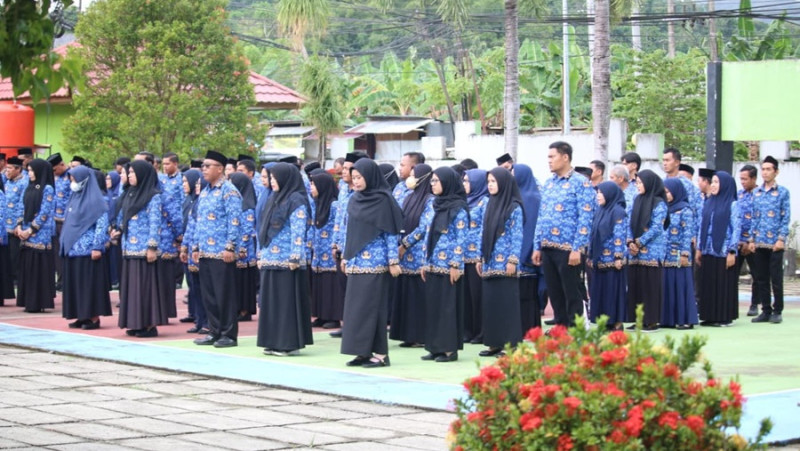 Upacara yang digelar di penghujung tahun 2025 ini berlangsung khidmat meski cuaca mendung menyelimuti kawasan perkantoran.