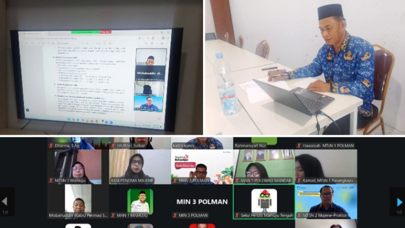 Selanjutnya, Ketua Tim Kerja Kurikulum dan Kesiswaan Kanwil Kementerian Agama Provinsi Sulawesi Barat, H. Muhammad Hamsul, menindaklanjuti arahan Kepala Bidang Pendidikan Madrasah serta membuka ruang diskusi dengan mendengarkan masukan dari seluruh peserta Zoom Meeting, baik dari Kepala Seksi Pendidikan Madrasah Kabupaten/Kota maupun para Kepala Madrasah se-Sulawesi Barat.