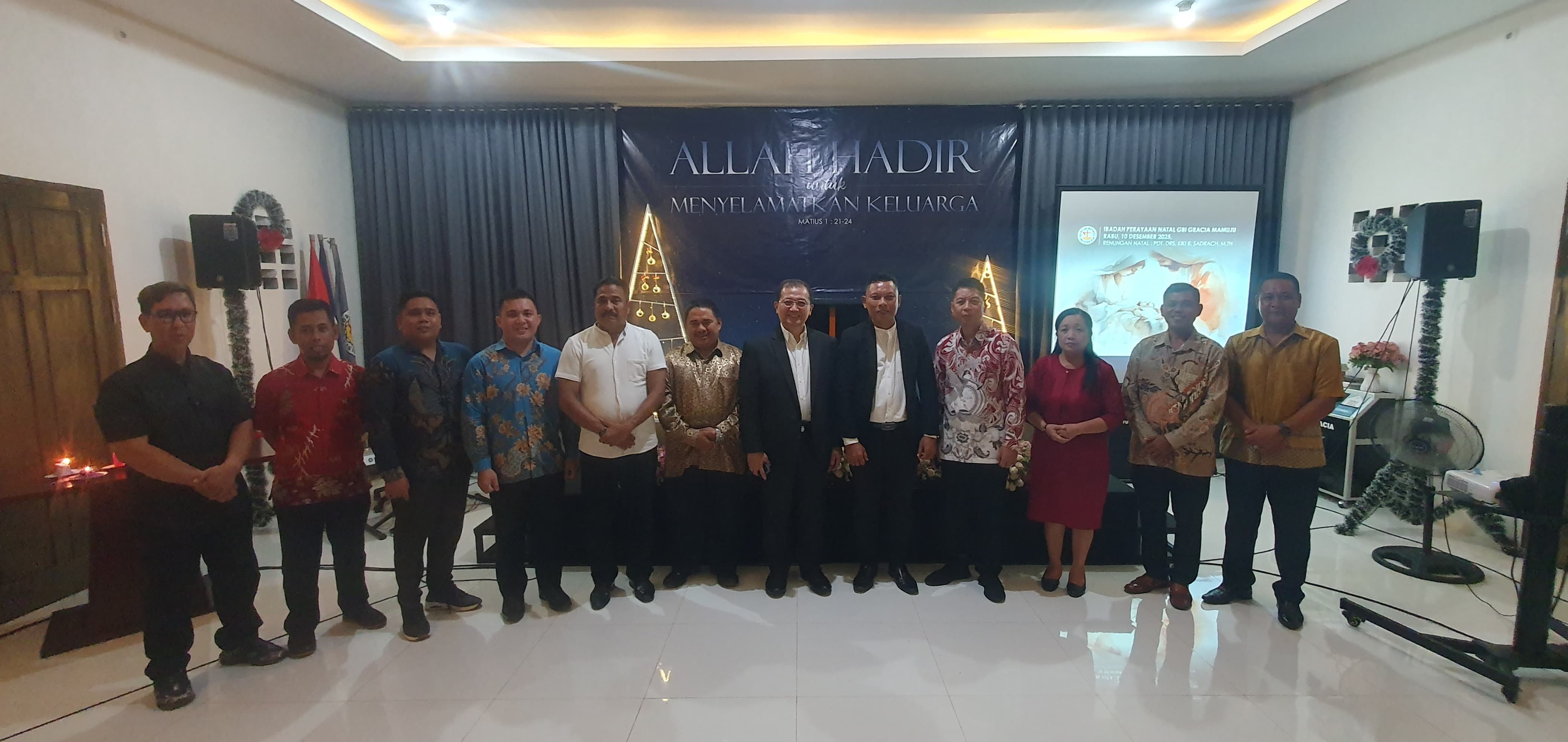 Perayaan Natal ini turut dihadiri Pendeta GBI Gracia Mamuju, Pdt. Rodi Sugiharto; Pendeta GBI Tomang Jakarta, Pdt. Kiki R. Sadrach, M.Th; serta Ketua Forum Komunikasi Gereja-gereja Mamuju, Pdt. Simon M. Topangae, M.Th.